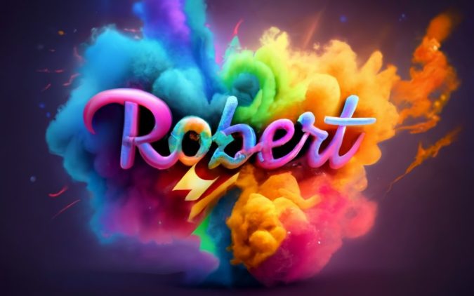 Generiert mit Ideogram. Prompt: The name ROBERT with colored smoke thunder lightning stars, 3d render, cinematic, poster, painting